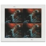 The image on the stamp is a digitally colored depiction of the invisible bands of mid-infrared light emitted by the Pillars of Creation. By assigning color to various infrared wavelengths, the digitized image allows us to see a landscape otherwise invisible to the human eye.